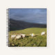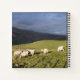 A photographic design of Welsh mountain sheep grazing on the sunny hillside just as the rain is about to start.