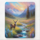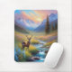 Mountain Stream Deer Wildflowers Sunrise Painting Mouse Pad