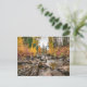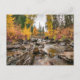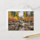 This postcard features a photo of a mountain stream in autumn/fall in the Flathead National Forest in Montana.