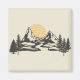 Simple retro style grunge illustration of mountain sunset with mountains, sun and pine trees decoration