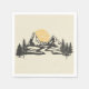 Simple retro style grunge illustration of mountain sunset with mountains, sun and pine trees decoration
