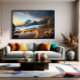 Immerse yourself in the tranquility of this epic landscape. Featuring majestic snow-capped mountains meeting the golden waves of a sandy beach, this artwork captures the perfect harmony of nature. Ideal for wall decor to bring serenity and adventure to your home.