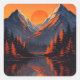 Mountain Sunset Reflection Fiery Orange Sky Square Sticker
