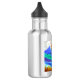 This gorgeous design depicts a colourful mountain landscape with puffy cloudy sky and rolling hills in bold textures and colours like blue, teal, cyan, gold, and orange.
