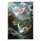 Experience the tranquil beauty of nature with this AI-generated landscape artwork photo enlargement art print showcasing a majestic mountain range, crystal-clear waterfalls, and lush, vibrant forests. The towering snow-capped peaks loom in the distance, while the gentle waterfalls cascade into a serene river that winds through the valley. The soft light and vibrant colours create a calming atmosphere, perfect for nature lovers and those seeking a peaceful ambiance in their home decor. This artwork's impressive attention to detail, from the delicate texture of the trees to the smooth flow of water, makes it a standout piece for anyone looking to bring the outdoors inside. The scene evokes a sense of serenity, transporting viewers to a remote mountain retreat where the natural world reigns supreme. It's ideal for adding a touch of wilderness to your living room, office, or bedroom.