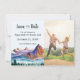Mountain Wedding Save the Date with your photo. The card is designed with a watercolor mountain scene with water and pine trees on the bottom of the Save the Date. You can edit all of the text details and add you own photo. The back of the card has a close up of the pine tree forest. If you are having trouble with photo placement or text, you can click on the Customise Further link/button to open the design editor.