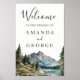 Wedding welcome sign, featuring beautiful watercolor mountains landscape. This sign is great for your mountain wedding, lakeside ceremony, outdoor celebration.