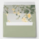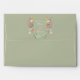 Mountain Wildflower Garden Wedding Invitation Envelope. This elegant sophisticated envelope has a beautiful romantic wedding crest with summer garden florals, ready for your own branded names or initials. Summer wildflowers in pink, blues, buttery yellows cascading around a sage green wedding crest. Elegant wedding invitation envelope in sage green. The inside flap features a garden of yellow flowers peeking through a sage green trellis. Match it with one of our beautiful Mountain Wildflower Garden Wedding Invitation, save-the-date, rsvp or detail cards. A beautiful elegant and sophisticated Wedding Collection to make your own.