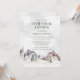 A rustic invitation for your winter wedding rehearsal dinner with a snow covered mountain and soft watercolor patterns.