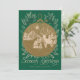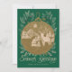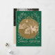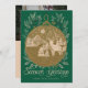 The nature-inspired artwork creates a sophisticated yet cosy aesthetic that speaks to both mountain lovers and those who appreciate woodland holiday themes, while the surrounding evergreen branches add organic warmth to the overall design. The green background provides the perfect canvas for the gold elements, creating a card that feels both festive and timelessly elegant.