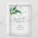 This bachelorette party invitation features the words "Bachelorette Weekend" set in a stylish handwritten script typography with event details in a classic charcoal grey serif font on a rustic wood background with a top boarder of my original watercolor greenery in shades of blues, greens and teal. The invite card reverses to a complimentary teal colour. A botanical choice for your girl's camping or cabin nature trip in the woods or mountains. To see my entire suite visit DoTellABelle on Zazzle.