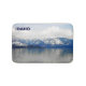 A digital painting of snow-capped mountains on the shores of Lake Pend Oreille (pond oray) at Sandpoint, Idaho on a late winter day. Customisable text reading "IDAHO" also appears.