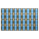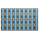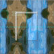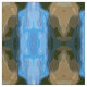 A bright, colourful abstract design of a mountain view, with blue sky, rock and trees.