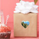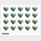 Bare winter deciduous trees and the occasional evergreen tree march down a mountainside, and then the vista opens up to mountain peaks in various shades of blues. These heart-shaped stickers help you show your love of the mountains.
