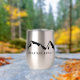 A thermal tumbler with mountains landscape in black colour and a customisable text: perfect for lovers of nature and outdoor adventures!