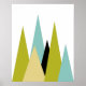 Mountains Mid Century Green Turquoise Yellow Black Poster