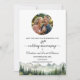 An elegant Wedding Anniversary Save the Date Card with watercolor mountains and pine trees and 1 special photo that you can customise with your details.