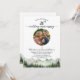 An elegant wedding anniversary invitation with watercolor mountains and pine trees and 1 special photo that you can customise with your details.