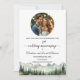An elegant Wedding Anniversary Save the Date Card with watercolor mountains and pine trees and 1 special photo that you can customise with your details.