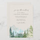 This elegant all in one wedding invitation features a watercolor forest and mountain scenery, minimalist details and calligraphy text. The back has additional details and a QR code making enclosure cards optional. It is classic yet modern and sure to set the scene for your mountain top destination wedding.