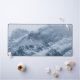 Close up landscape photograph of majestic mountains covered in snow and fog.