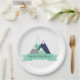 Adventure Awaits Mountains Themed Boy Baby Shower Paper Plates in Mint and Navy colours