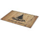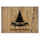 Custom 11"x8" rectangular glass cutting board designed for the family mountain home. Silhouette of mountains and pine trees, customised with your family name on a rustic-wood design background. Perfect for your mountain home/vacation rental. Or customise your text for any use.