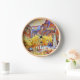 Mountains Trees Waterfall landscape digital oil painting colourful abstract art wall clock