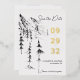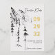 This elegant and rustic wedding Save the Date card is perfect for any destination or outdoor wedding and features a classy mountain and forest black & white sketch design complemented with handwriting typography and real gold foil to give a stylish touch to your wedding suite.