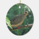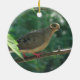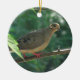 A pretty grey and tan turtle dove steps along a lichen covered branch in dappled summer sun.
