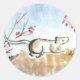 A curious white mouse inspects a plant covered in juicy red berries. Original Chinese brush painting art by Ren Adams, in full colour on cute stickers!