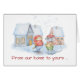 A cute mouse and winter bird are standing together in front of their houses. Sweet card to wish Merry Christmas from our home to yours! Animals from By Eva-Katerina of Hungry JPEG