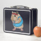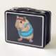 This is a standard metal lunchbox that appears to work just fine. We designed this box ourselves with an uploaded photo and custom text on the front and back. It looks absolutely beautiful except the front of the lunchbox is not centered like it shows in the photo. The print borders don't align with the inset flat part of the box where the preview photo online showed it perfectly centered in there. The back looks nice and centered though.