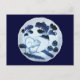 Porcelain plate with design in blue underglaze of a mouse eating a turnip. 1 3/4" x 11 7/16". Elegant vintage Japanese fine art nature and animal design.