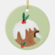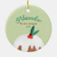 A nice personalised ornament for your Christmas tree with a mouse near a Christmas pudding ball.