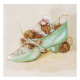 This painting is of a mouse family in an ornate woman’s shoe.