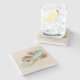 The coasters are gorgeous, a quality feel and heavy weight. They look like a precious archeological find. A rustic stone juxtaposed with a modern floral black and white print. I like the way the print goes slightly imperfect on the cut stone edges giving them a kind-of natural beauty.