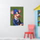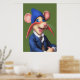 Mouse in blue jacket and beanie with big smile and blue eyes on a green background. This is a AI generated art