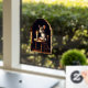 Product looks nice. I meant to get it more transparent so light shines through but saw that I chose the opaque in error with the white underbase. With that being said, I did not get the chance to place it on the window as it was ordered on 11/9 but did not arive until 12/4 which was after I had already taken down the Thanksgiving decorations. Could not review as to how it looked in the window. The image and colors look good