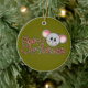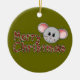 A little grey mouse and red and green candy cane striped text that reads "Merry Christmas" on a keepsake holiday ornament that you can change the shape of before ordering.