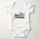 A little grey mouse and candy cane striped text that reads "Merry Christmas" on Christmas holiday T-shirts, hoodies, sweatshirts, bodysuits, tote bags, stickers, magnets, and other holiday clothing and gifts.