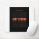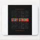 Stay Strong" Mouse Pad, designed to inspire resilience and focus in your daily routine. This sleek and durable mouse pad features a bold, empowering "Stay Strong" quote printed in high-definition across its surface, serving as a constant reminder to push through challenges.