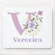 Design features Monogram & Name with Flowers either side in a water colour pastel style. Example name is Veronica. Could be for anyone with a name beginning with V.