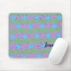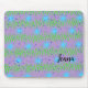 Mouse Pad with blue stars, green swirls, on a purple background. The name on the pad can be changed.
