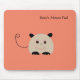 Mouse pad with cute illustrated mouse and a place to put your name. The name can be changed on the pad. The background is orange, and the mouse is tan and black.
