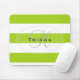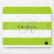 Lime green and white striped plaid mouse pad with your name in black and initial in grey. Design HAMbyWhiteGlove aka HAMbWG