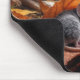 A small mouse peacefully sleeps curled up inside an autumn maple leaf on a forest floor