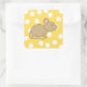 A cute light brown mouse on a yellow background with white dots to look similar to cheese.