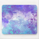 Mousepad with abstract design of cosmic dreamscape of lavender, purple and teal colours.