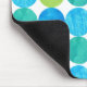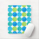 A vibrantly coloured Mousepad with a 'Blue Moons' abstract pattern in bright blues and neon green on a white background; from a handpainted paper collage design by Judy Adamson.